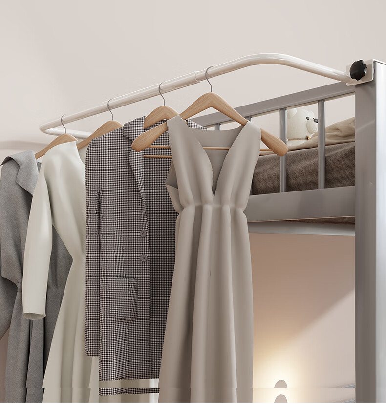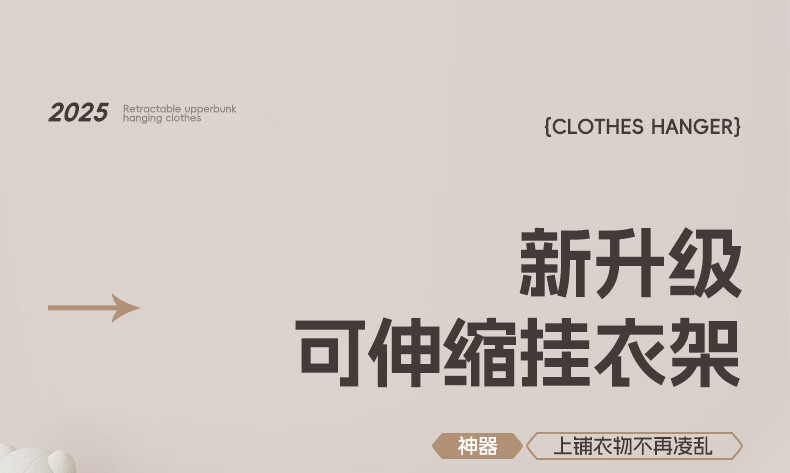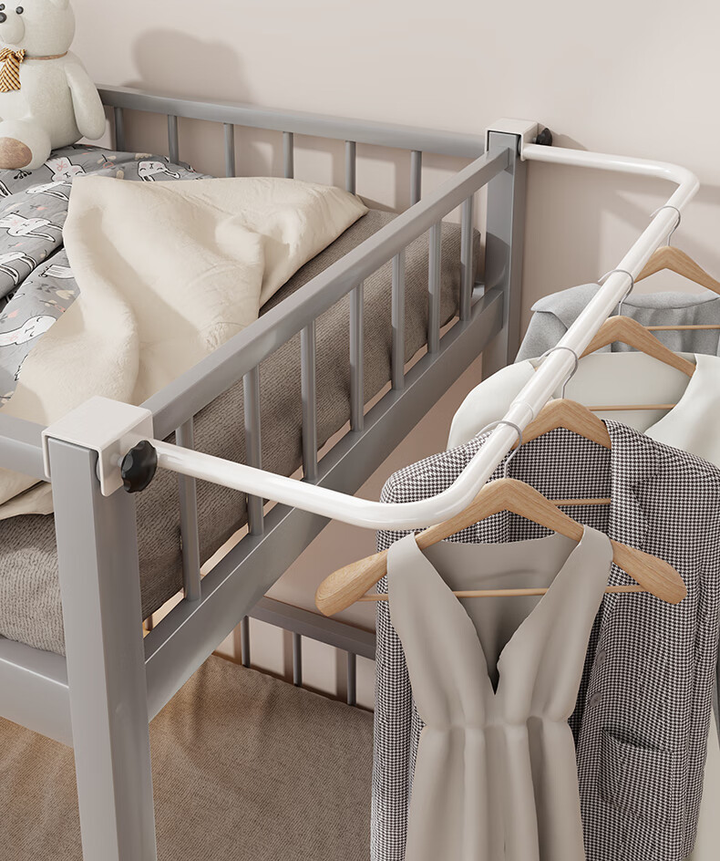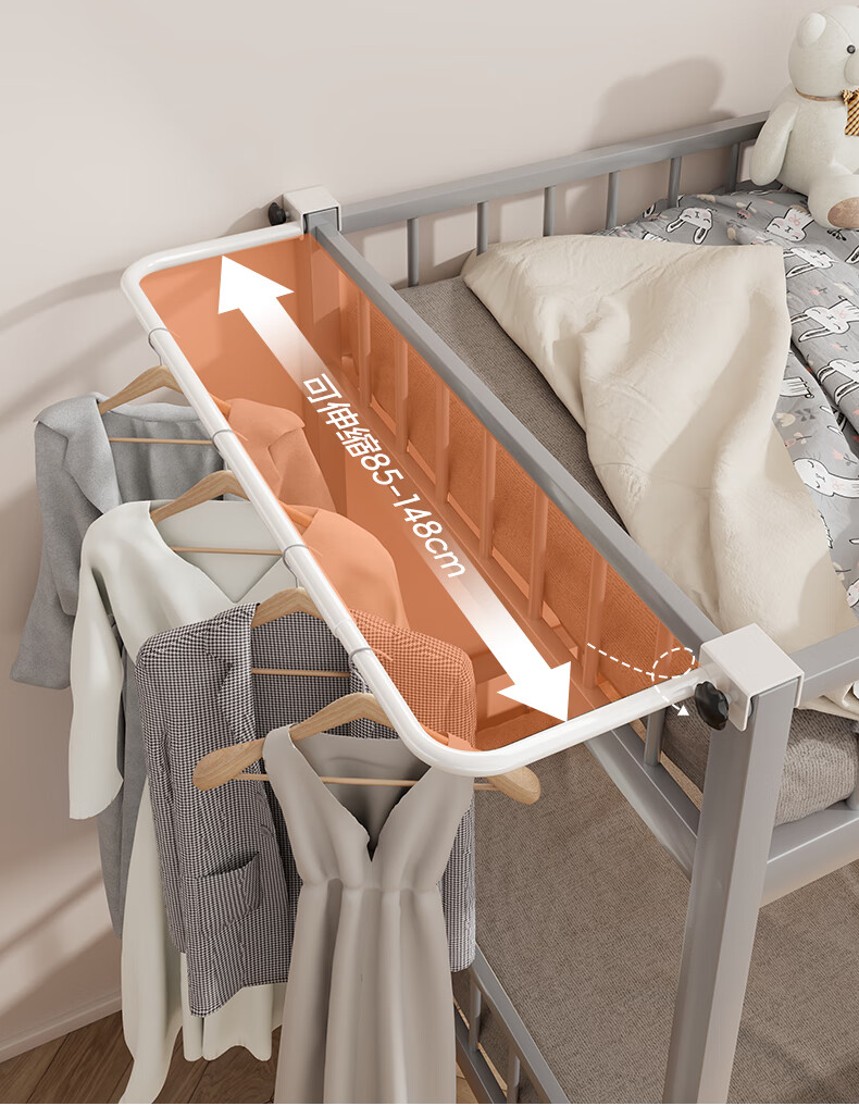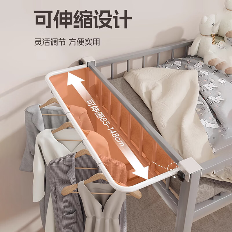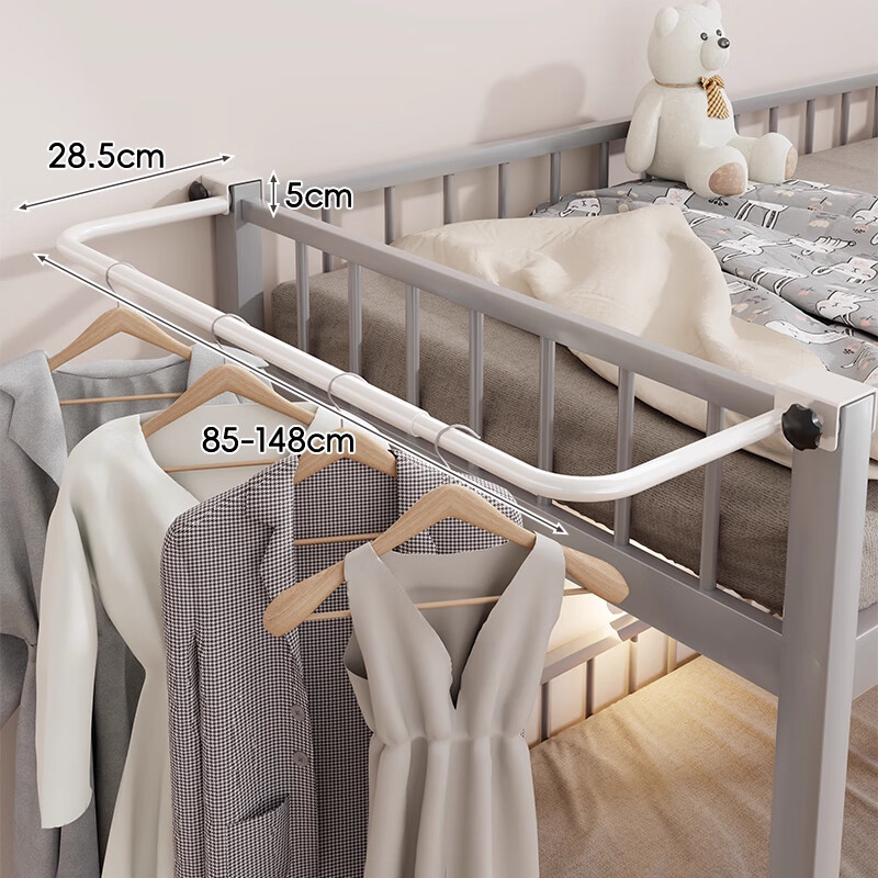 聚骊汇可伸缩挂衣架宿舍上下铺床边晾衣服挂架放衣神器多功能置物架神器 白色 1层_85*28cm